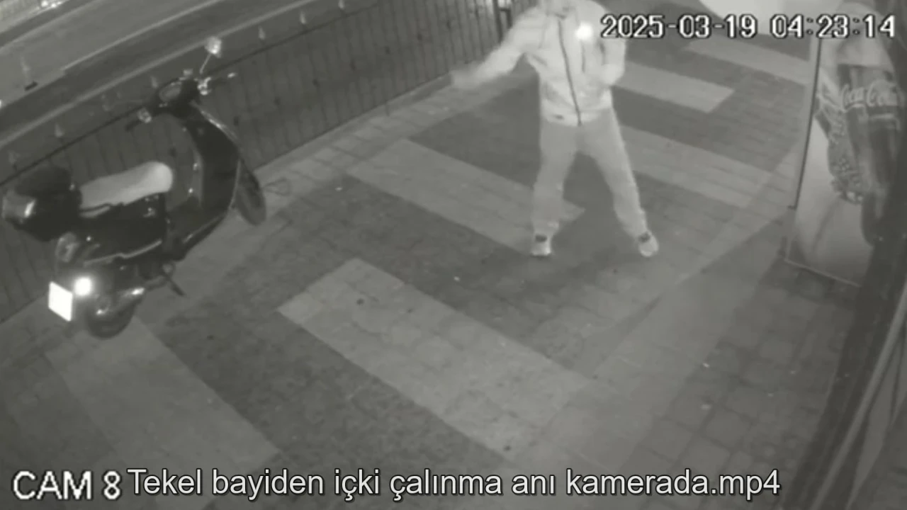 Güvenlik kamerası görüntülerinde, B.Ç.’nin elindeki taşlarla iş yerinin camını kırarak içeri girdiği ve dolaptan içki aldıktan sonra hızla uzaklaştığı anbean kaydedildi.
