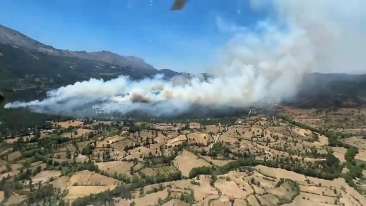 Isparta’nın Sütçüler ilçesine bağlı Aşağıyaylabel köyü yakınlarında çıkan orman yangınına ekiplerin havadan ve karadan müdahalesi sürüyor.
