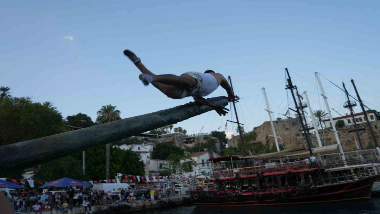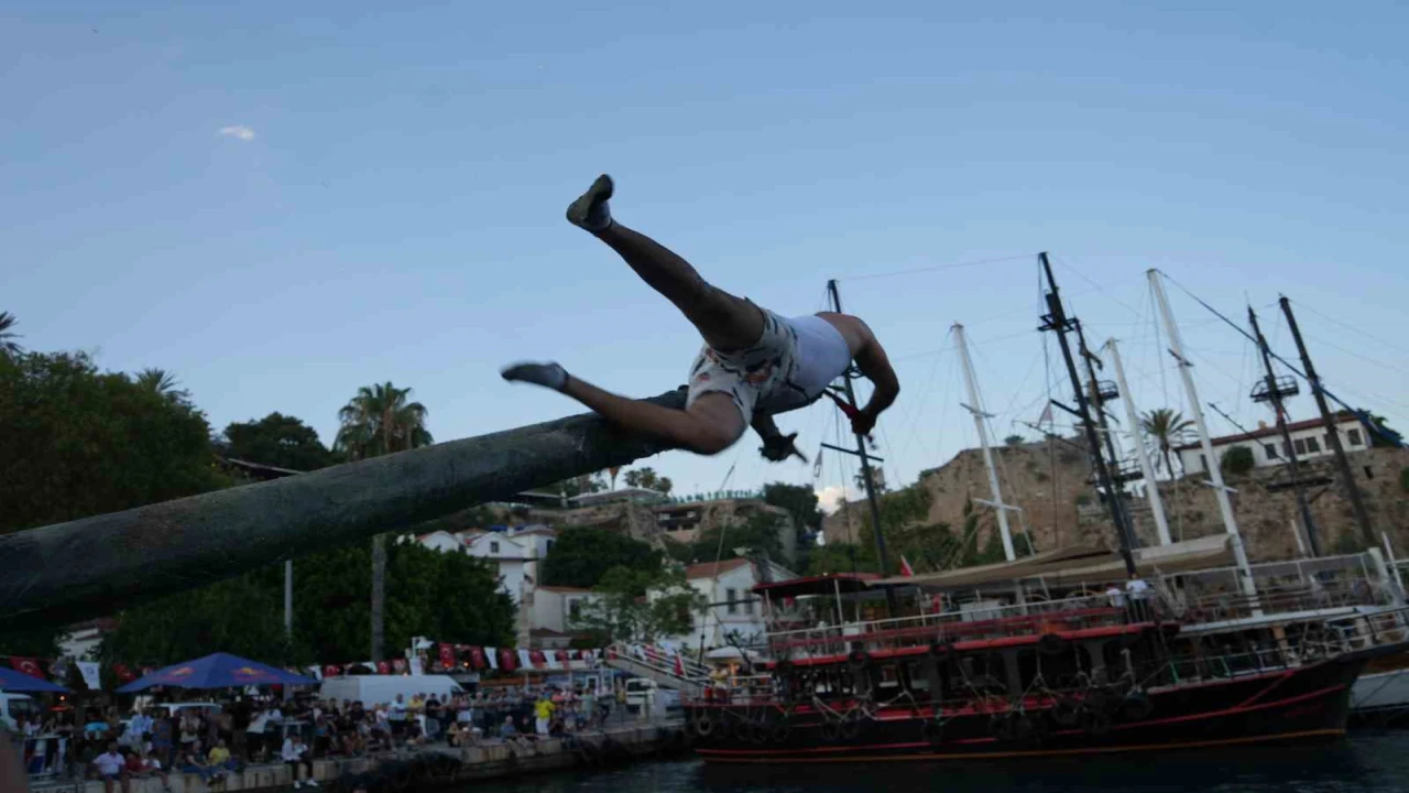 Ardından geçilen yağlı direk yarışması, izleyicilerin en çok ilgi gösterdiği anlardan biri oldu. Yağ sürülmüş direğin ucundaki Türk bayrağına ulaşmak için yarışmacılar defalarca suya düştü. Yoğun çabaların ardından bayrağa ulaşan isim, geçtiğimiz yılın da kazananı olan Muhammed Resul Akkuş oldu.