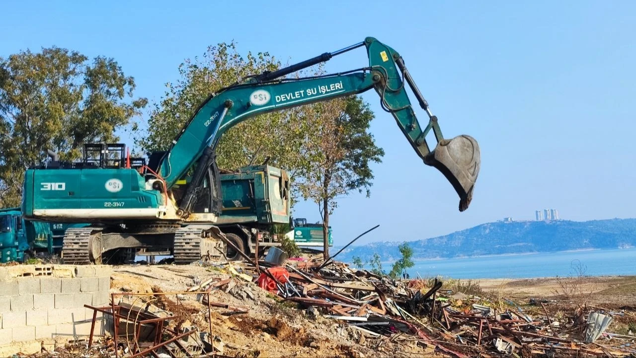 AMERİKAN ADASI OLARAK BİLİNEN YERDEKİ KAÇAK YAPILARIN YIKIM İŞLEMLERİ İKİNCİ GÜNÜNDE DE DEVAM EDERKEN, BİR TARAFTAN DA MOLOZLAR TEMİZLENMEYE BAŞLANDI.