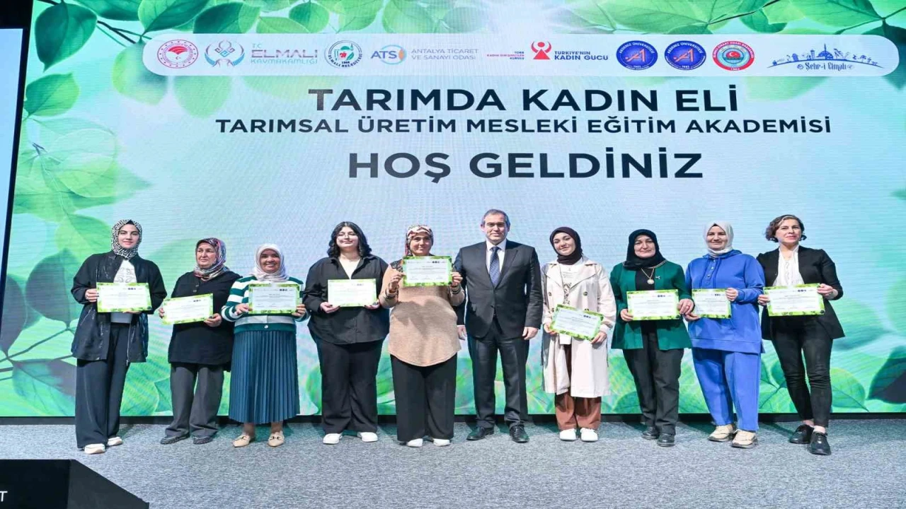 Antalya’nın Elmalı ilçesinde "Tarımda Kadın Eli" projesi kapsamında eğitimlerini tamamlayan 100 çiftçi kadına sertifikaları verildi.