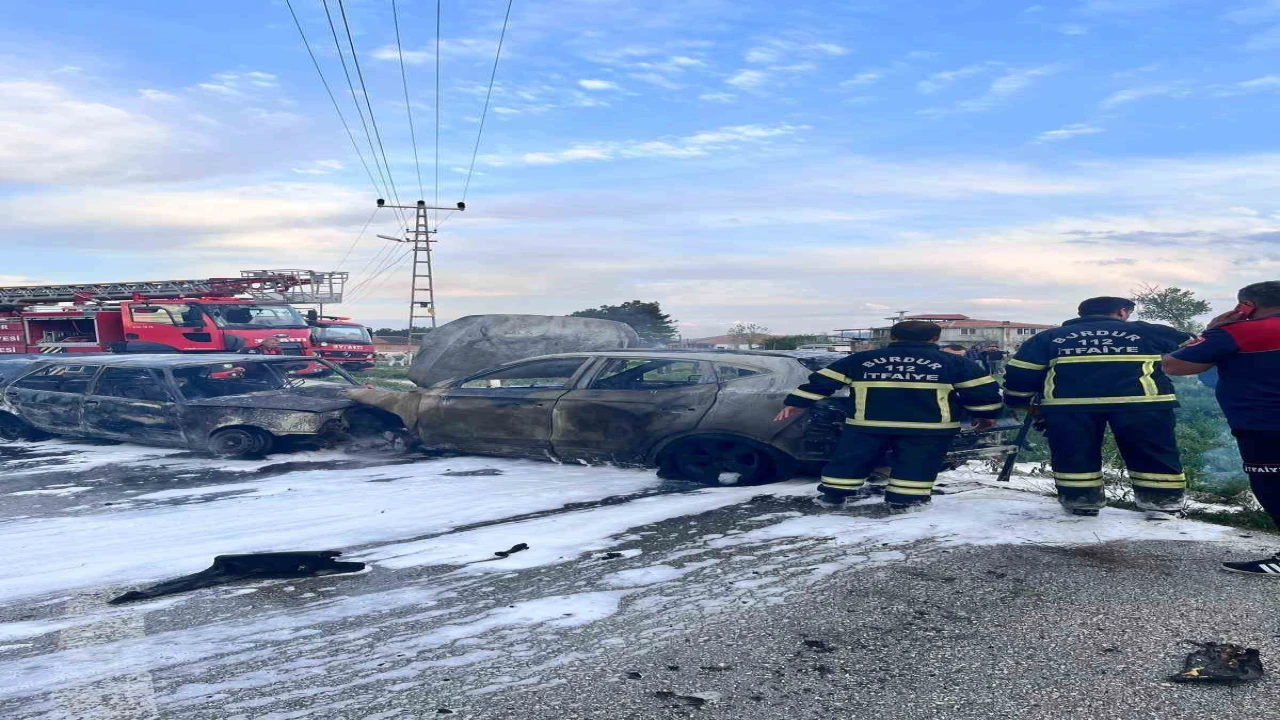 BURDUR MERKEZE BAĞLI YAZIKÖY’DE KAFA KAFAYA ÇARPIŞAN OTOMOBİLLER YANARKEN KAZADA 1 KİŞİ ÖLDÜ 4 KİŞİ YARALANDI.