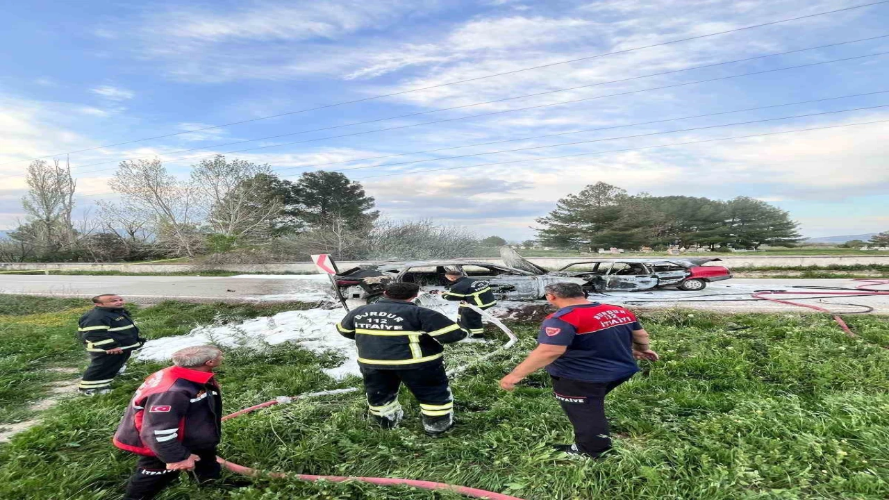 Burdur merkeze bağlı Yazıköy’de kafa kafaya çarpışan iki otomobi yanarken, kazada 1 kişi hayatını kaybetti, 4 kişi yaralandı.