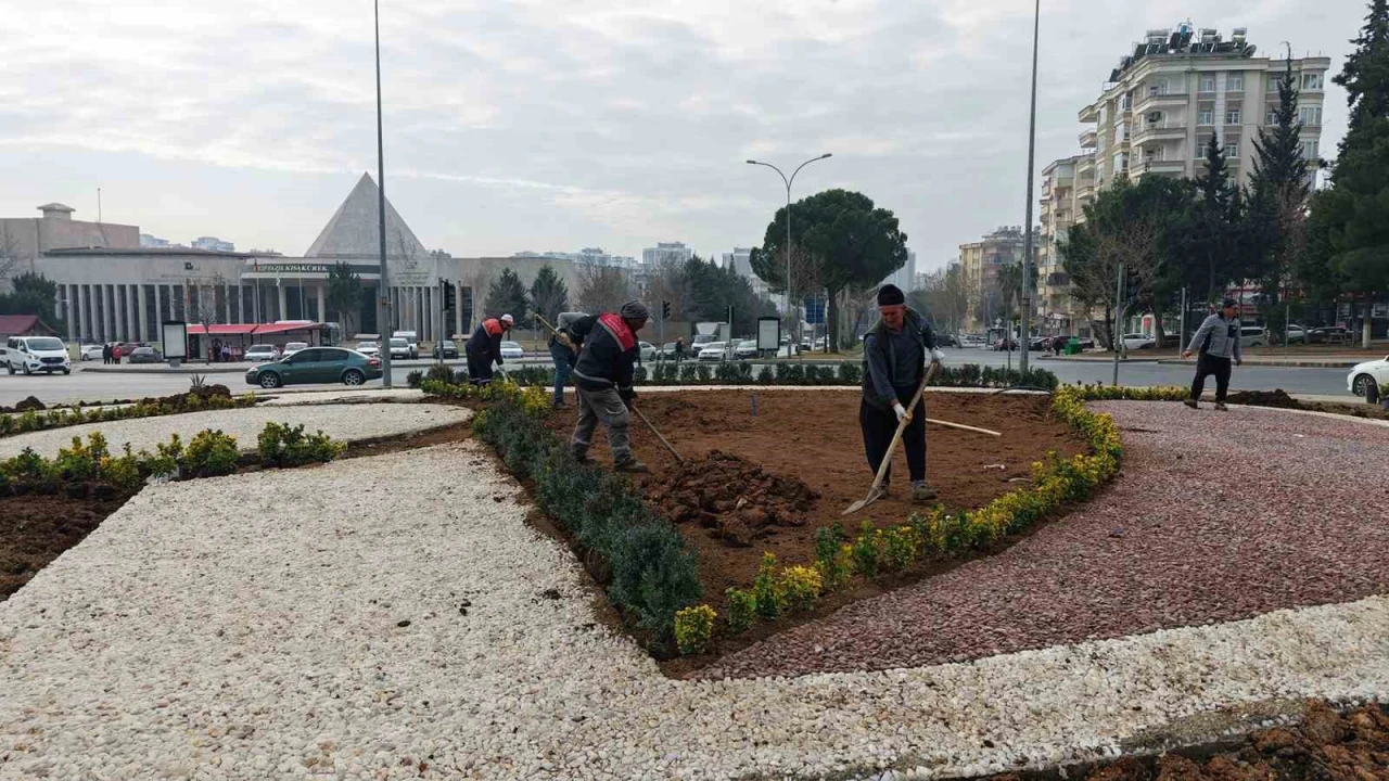 Kahramanmaraş Büyükşehir Belediyesi, Onikişubat’ta Necip Fazıl Kısakürek Kültür Merkezi önündeki kavşağın görsel cazibesini artırmak ve bölgeye estetik bir dokunuş kazandırmak için peyzaj ve çevre düzenlemelerini sürdürüyor.