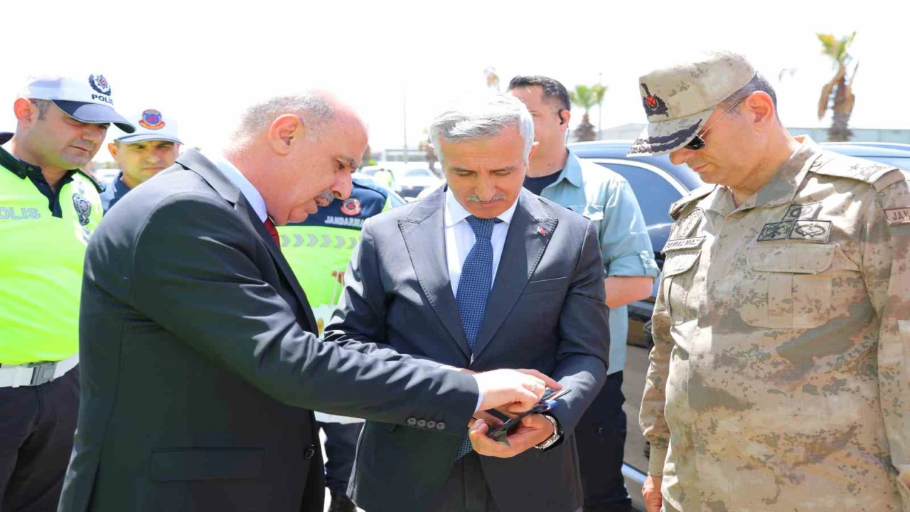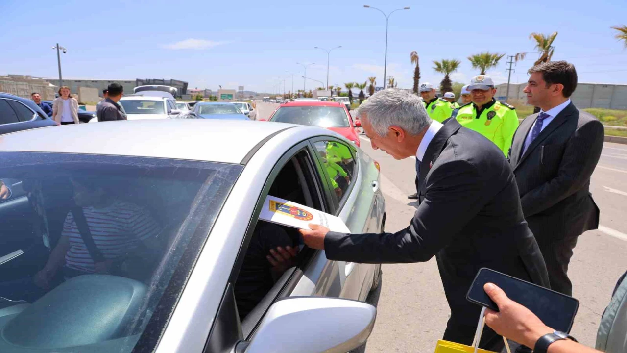 Kahramanmaraş’ta Vali Mükerrem Ünlüer, denetime katılarak sürücüleri hem uyardı, hem de hediye verdi.