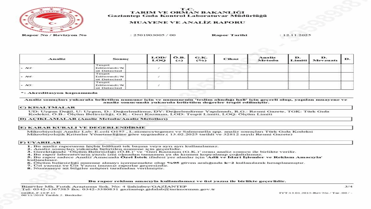 TARIM VE ORMAN BAKANLIĞI YETKİLİLERİ, KONUYA İLİŞKİN YAPTIKLARI İNCELEMEDE İDDİALARIN GERÇEĞİ YANSITMADIĞINI ORTAYA ÇIKARDI. FİRMANIN ÜRÜNLERİNDE YAPILAN ANALİZDE ‘UYGUN' OLDUĞU TESPİT EDİLDİ.