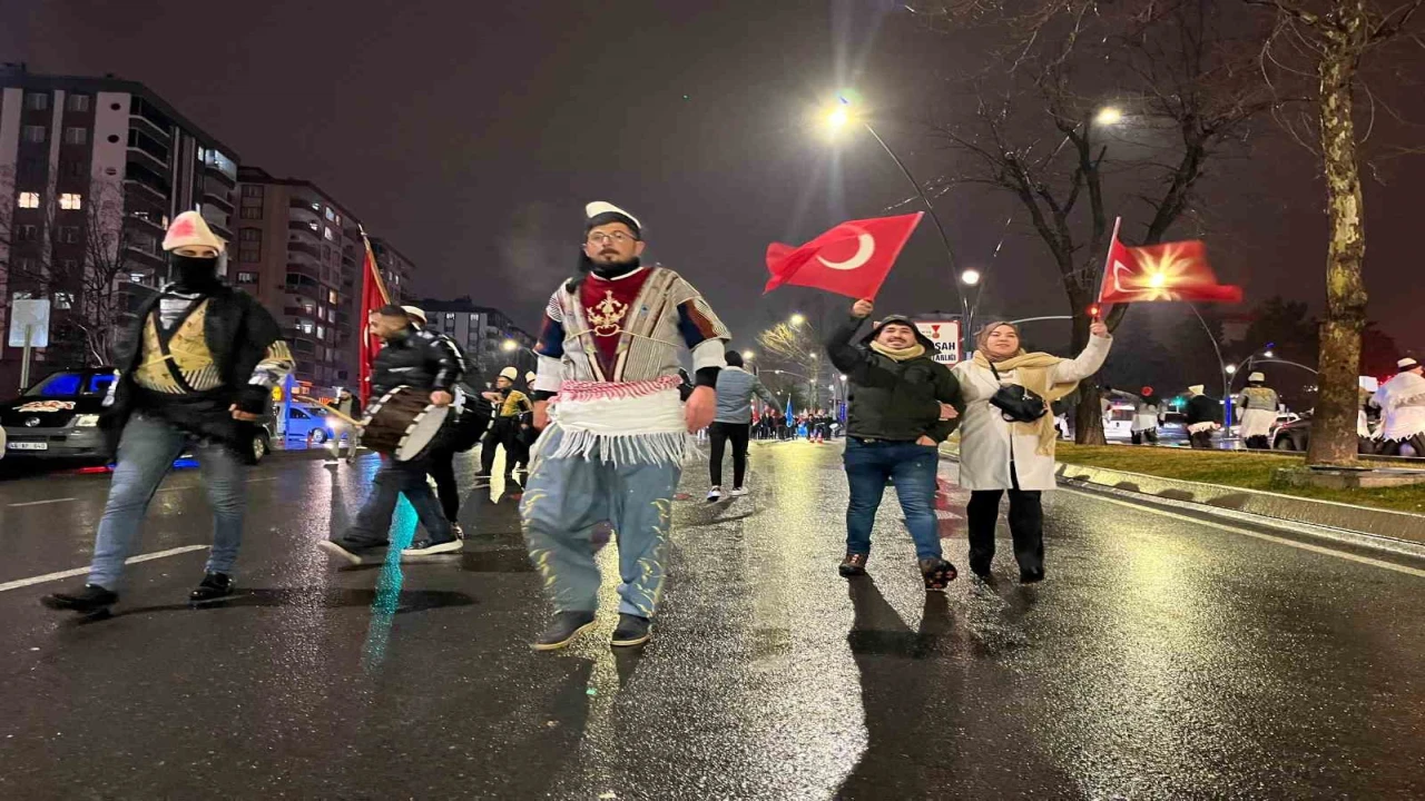 Kahramanmaraş’ın düşman işgalinden kuruluşunun 105’inci yıldönümünde şehir protokolü ve vatandaşların katılımı ile fener alayı düzenlendi. Yağışın etkili olduğu etkinliğe binlerce vatandaş, ellerinde ay yıldızlı Türk bayrakları ile katıldı.
