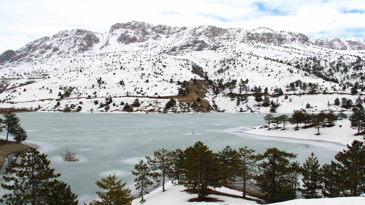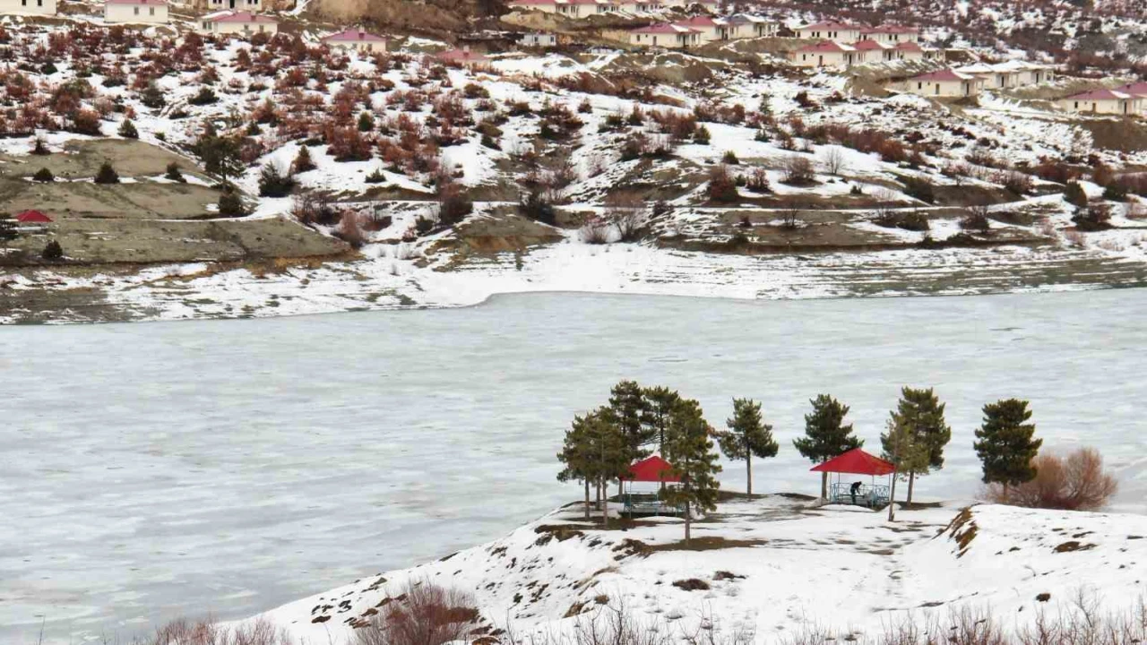 Kahramanmaraş’ın Göksun içesinde soğuk havanın etkisiyle baraj ve göletler buz tuttu.