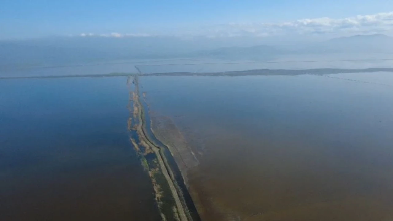 KAHRAMANMARAŞ'TA ETKİLİ OLAN SAĞANAK NEDENİYLE TÜRKOĞLU İLÇESİNDEKİ BİNLERCE DÖNÜM TARIM ARAZİSİ SU ALTINDA KALDI. ALAN DRONE KAMERASI İLE GÖRÜNTÜLENİRKEN ADETA YENİ BİR GÖL GÖRÜNTÜSÜ ORTAYA ÇIKTI.