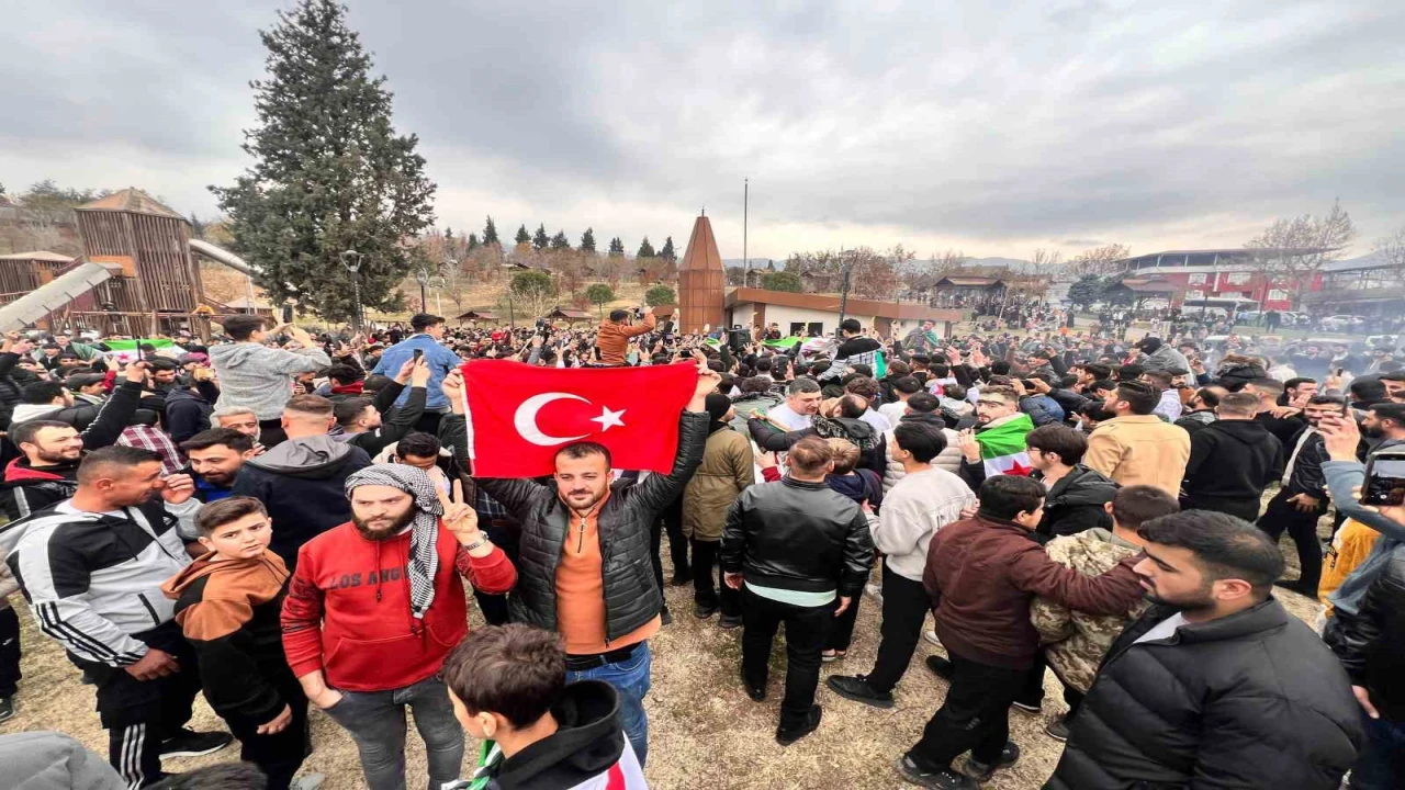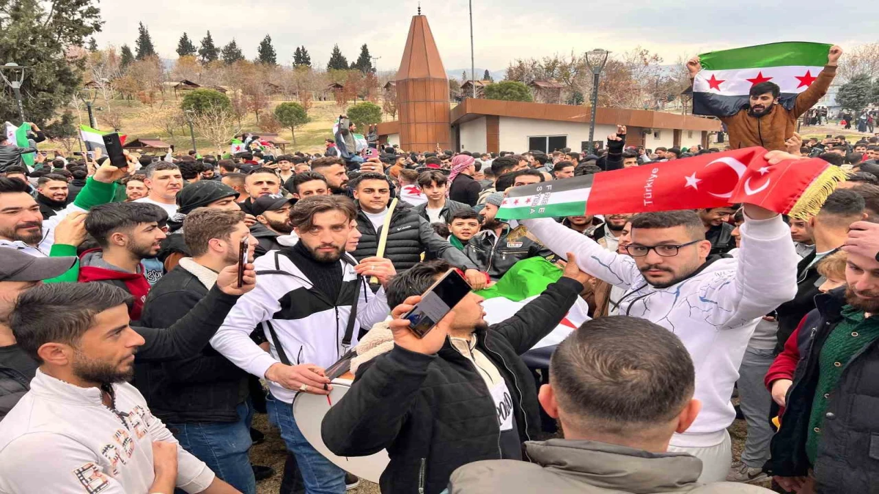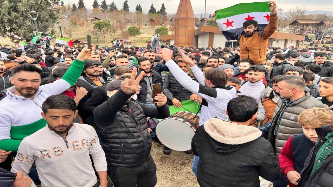 Otomobil ve motorlarına binan Suriyeliler konvoy yaptı. Şehir merkezinde toplanan Suriyeliler buradan 15 Temmuz Millet Bahçesi’ne yürüdü. Burada sloganlar atıp Esed rejiminin devrilmesini kutlayan Suriyeliler Türkiye’ye teşekkür etti. Bölgede toplanan Suriyeliler davul zurna eşliğinde halay çekti. Kimi Suriyelilerin ellerinde Türk Bayrağı ve Cumhurbaşkanı Recep Tayyip Erdoğan’ın fotoğraflı olması dikkat çekti. Abdullah Nacar, “Artık savaş bitti ve Esed gitti biz de geri gideceğiz 13 yıldır bekliyoruz. Türkiye milletine çok teşekkür ederim” dedi.
