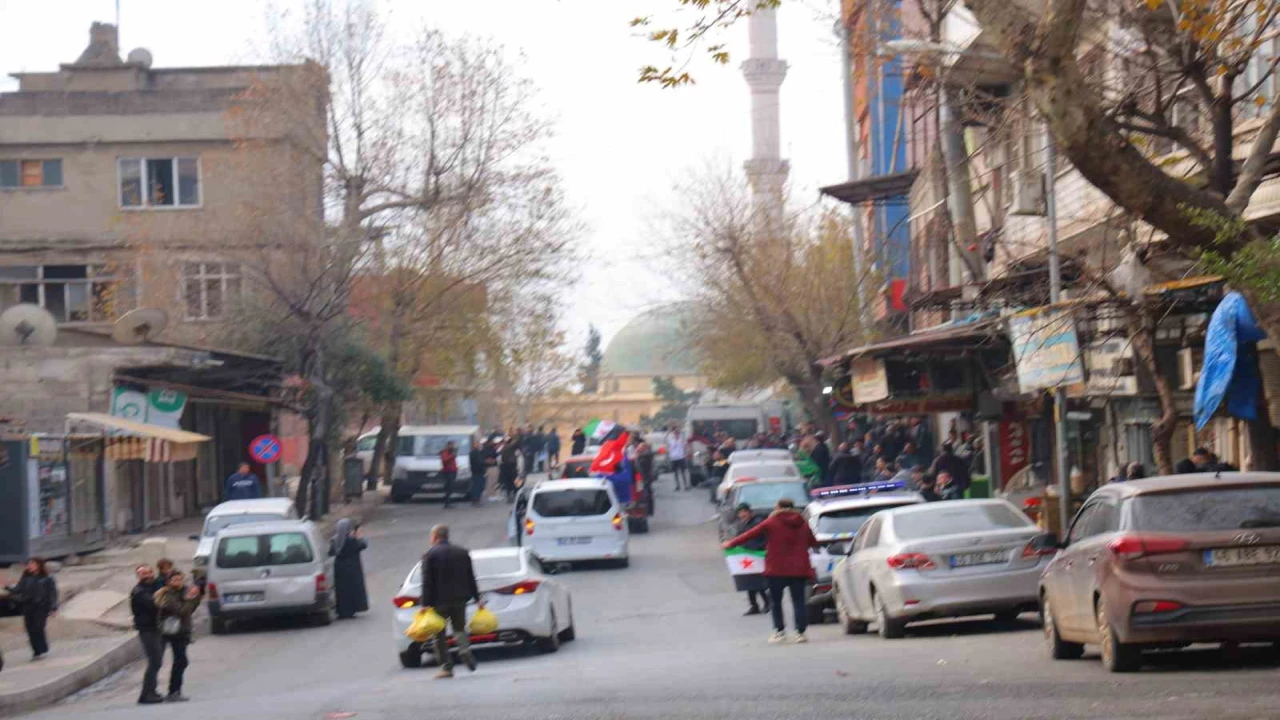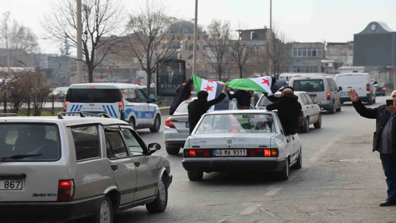 Kahramanmaraş’ta yaşayan binlerce Suriyeli araçlarıyla konvoy ve yürüyüş yaparak Esed’ın gidişini kutladı.