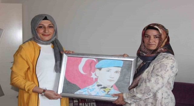 Kahramanmaraş’ta ressam kadın, şehitlerin resimlerini karakalem teknikle çizerek şehit ailelerine hediye ediyor.