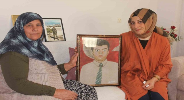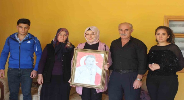 Afşin ilçesinde yaşayan ressam Ülger Gülbahar, farklı zamanlarda şehadete eren şehitlerin resimlerini karakalem teknikle çizerek aileleri ziyaret ediyor.