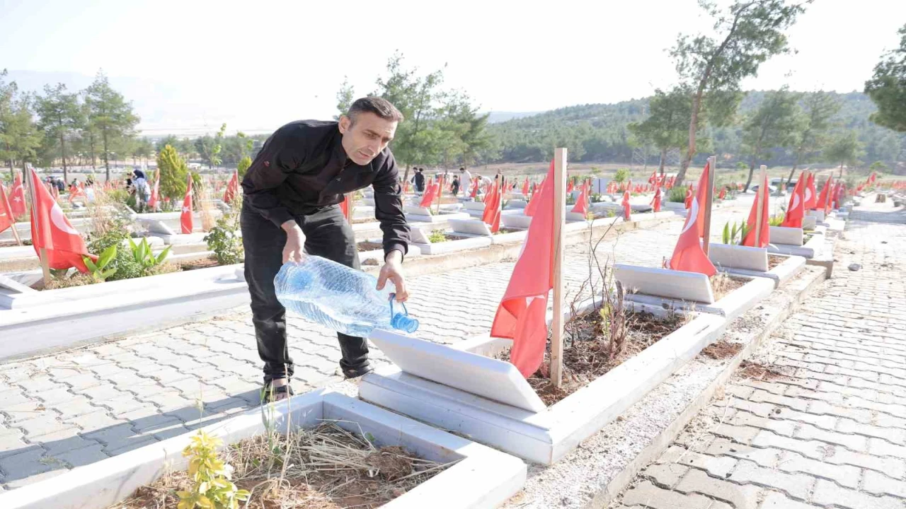 Kurban Bayramı’nın birinci gününde 6 Şubat depremlerinde hayatını kaybedenlerin defnedildiği Kapıçam Şehir Mezarlığı’nda hüzün hakim oldu. Sabahın erken saatlerinden itibaren mezarlığa gelen vatandaşlar, kabirleri temizledi, çiçek bıraktı, su dökerek Kur’an-ı Kerim okuyup dua etti. Depremde eşini, çocuğunu, anne-babasını kaybeden çok sayıda vatandaşın mezar başında gözyaşlarını tutamadığı görüldü. Bazı vatandaşlar mezar taşlarını okşayarak dua ederken, bazıları ise yanlarında getirdikleri su bidonlarıyla mezarları yıkayıp güller bıraktı.