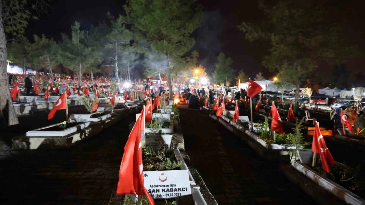 KAHRAMANMARAŞ'TA 6 ŞUBAT 2023 DEPREMLERİNİN YIL DÖNÜMÜNDE, FELAKETTE HAYATINI KAYBEDENLERİN YAKINLARI GECE SAATLERİNDEN, SABAHIN ERKEN SAATLERİNE KADAR MEZARLIKLARA AKIN ETTİ