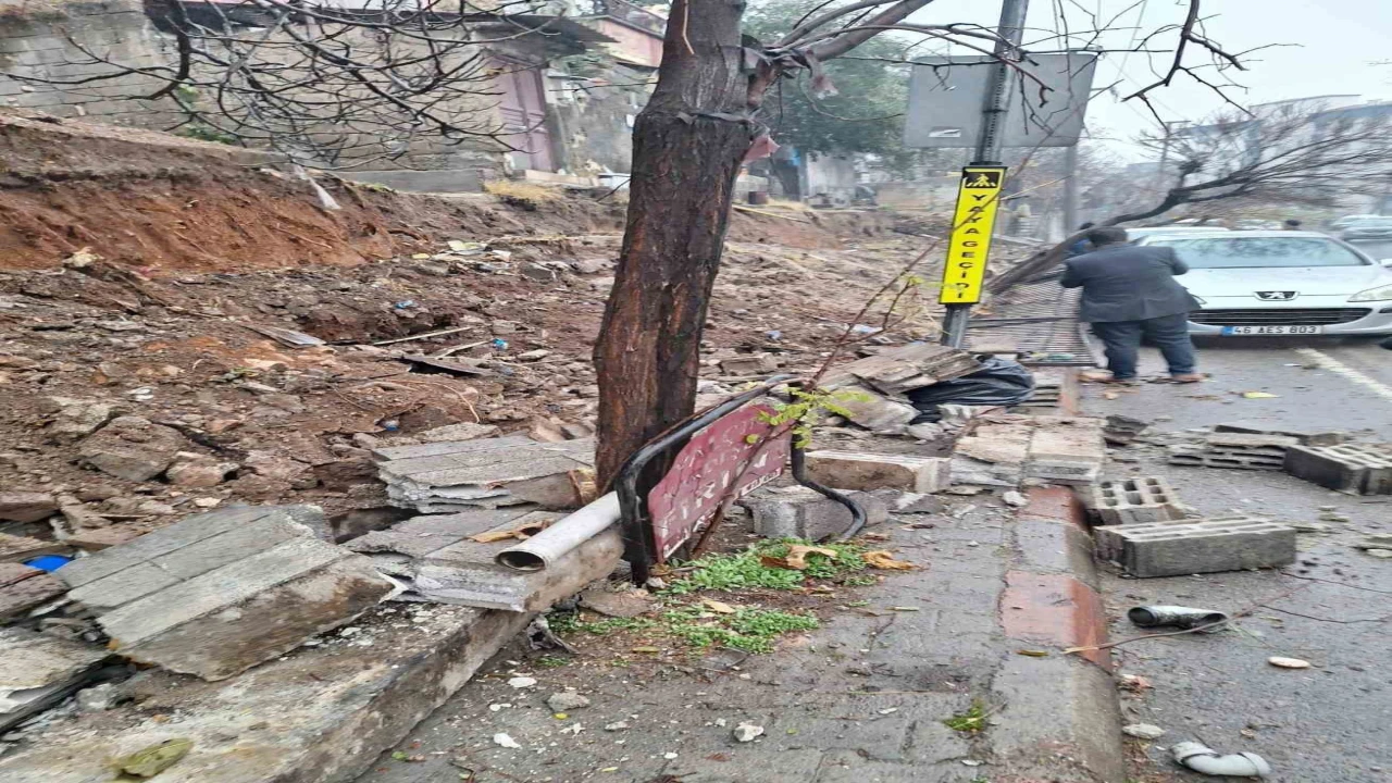 KAHRAMANMARAŞ’TA ŞİDDETLİ YAĞIŞLAR SONRASI İSTİNAT DUVARI ÇÖKTÜ.