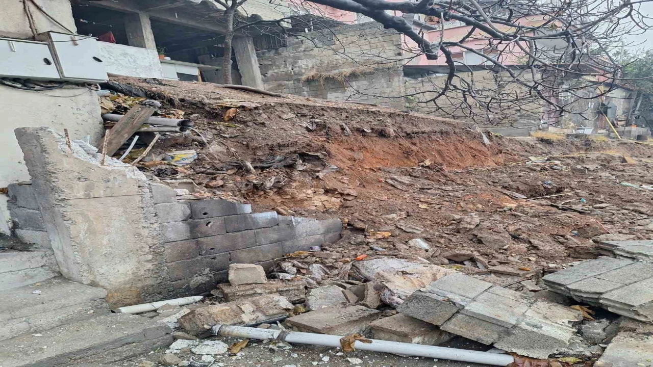 Kahramanmaraş’ta şiddetli yağışlar sonrası istinat duvarı çöktü.