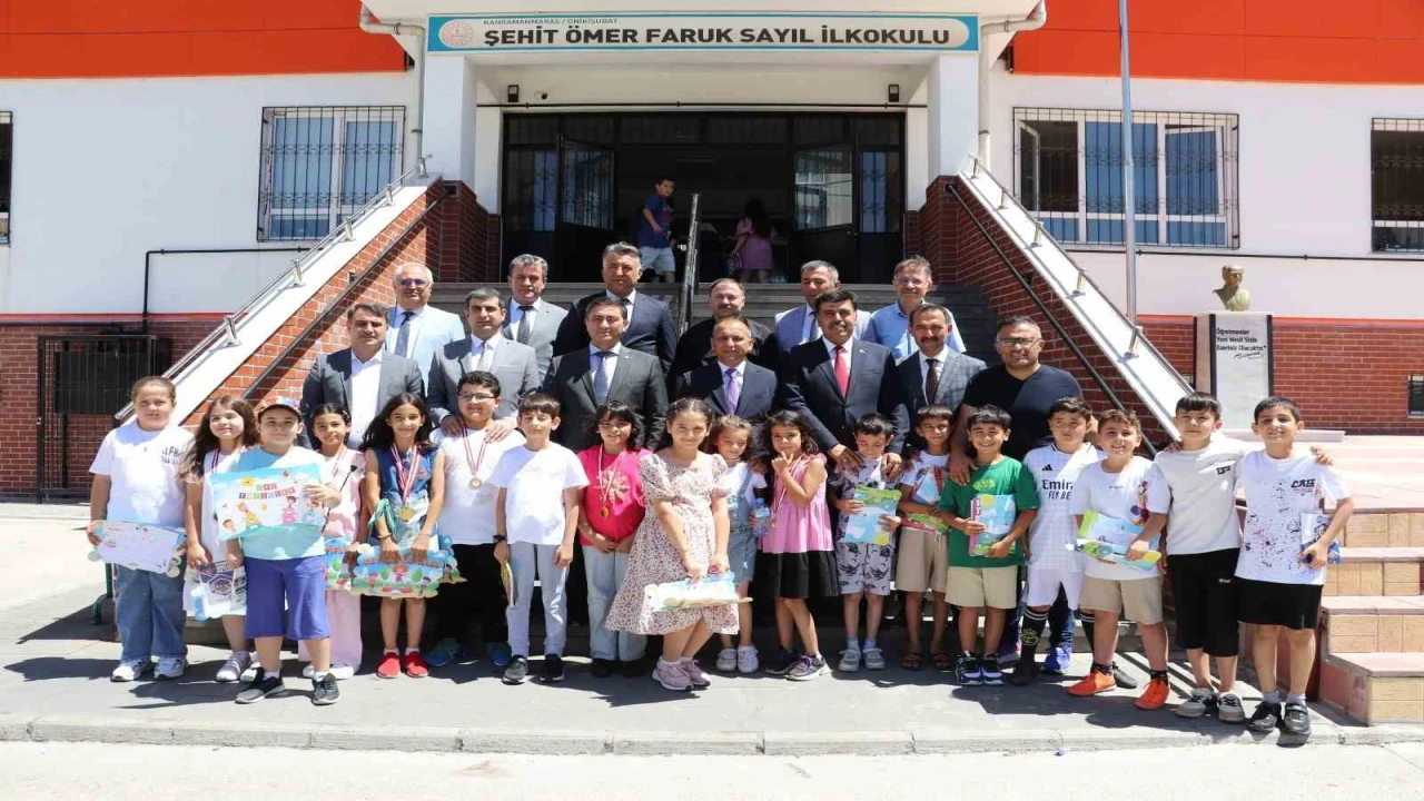 Karne dağıtım töreni, Onikişubat ilçesindeki Şehit Ömer Faruk Sayıl İlkokulu’nda düzenlendi. İl Millî Eğitim Müdürlüğü koordinesinde gerçekleştirilen programa Vali Yardımcısı İbrahim Şenkon, Onikişubat Kaymakamı Salih Çiğdem, İl Millî Eğitim Müdürü Erhan Baydur, İlçe Millî Eğitim Müdürü Harun Kurt, öğretmenler, öğrenciler ve veliler katıldı. Törende sınıf ziyaretleri yapılarak öğrencilere karne ve çeşitli hediyeler takdim edildi. Öğrenciler, karne sevinci yaşadı.