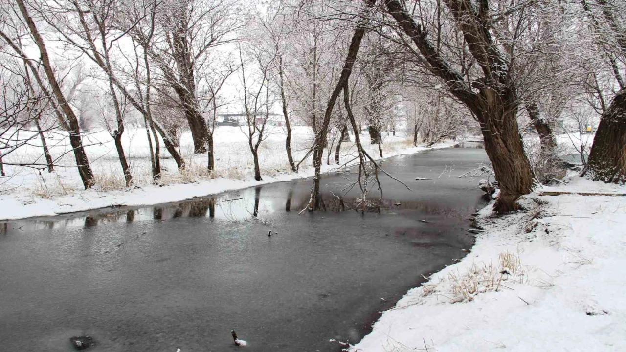 Kahramanmaraş’ta etkili olan soğuk hava nedeniyle Mağaragözü Çayı buz tuttu.