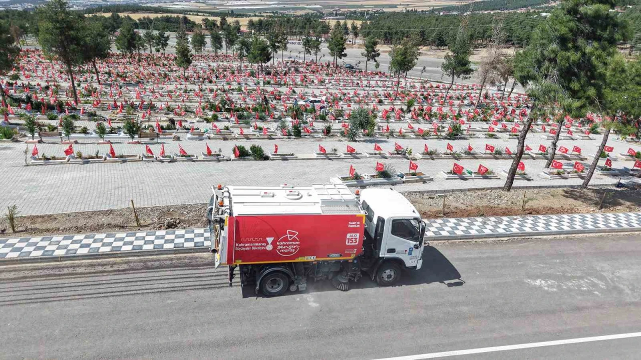 Kahramanmaraş Büyükşehir Belediyesi, Kurban Bayramı öncesi mezarlıklarda temizlik uygulamalarını yoğun bir şekilde sürdürüyor.