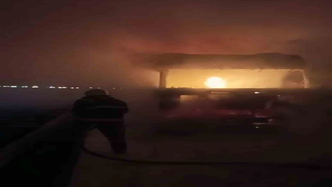 KAHRAMANMARAŞ’TA SEYİR HALİNDEKİ BİR TIR, HENÜZ BİLİNMEYEN BİR NEDENLE ALEV ALDI. ALEVLERE TESLİM OLAN TIRDA MADDİ HASAR OLUŞTU.