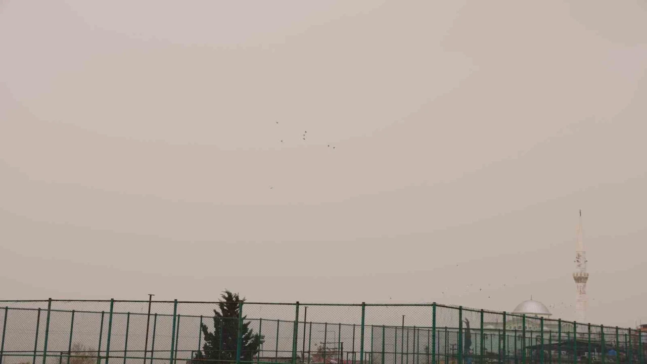 Kahramanmaraş’ta sabah saatlerinde etkili olan sağanak yağmur yerini toz bulutlarına bıraktı. Sahra çölünden rüzgarlarla taşınan toz partikülleri nedeniyle şehir genelinde hava kalitesi düşerken, oluşan puslu hava dron kamerası ile görüntülendi. Kentte etkili olan toz bulutu nedeniyle araçların üzerinin ince bir toz tabakasıyla kaplandığı gözlenirken, gökyüzünde sarımsı ve puslu bir görüntü oluştu. Dron ile kaydedilen görüntülerde, kentin üzerini kaplayan toz bulutu ve görüş mesafesindeki düşüş net şekilde görüldü.
