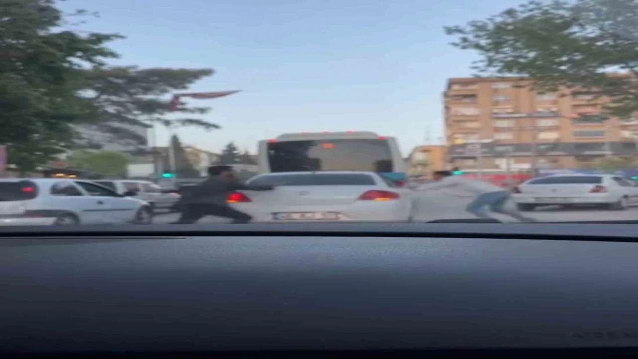 Kahramanmaraş’ta trafikte iki grup arasında çıkan kavga cep telefonu kamerası ile görüntülendi.