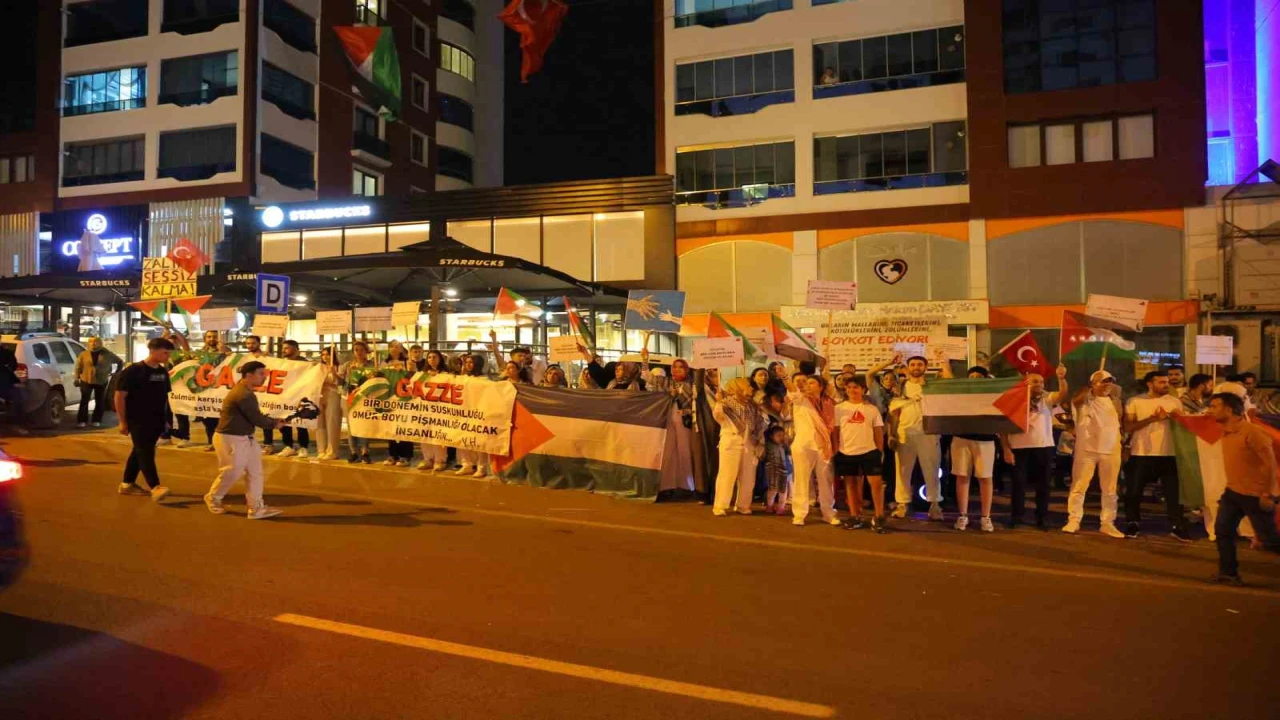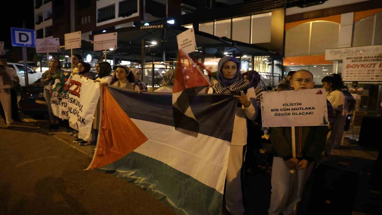 Kent merkezinde Starbucks’un önünde toplanan vatandaşlar, ellerinde taşıdıkları pankart ve Filistin bayraklarıyla İsrail’i protesto etti. Gösteri sırasında yoldan geçen araç sürücüleri de kornalara basarak göstericilere destek verdi. Vatandaşlardan bazıları dua ederken, bazıları da şiir okuyarak Filistin halkına destek mesajı verdi.