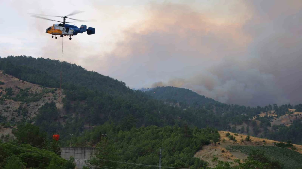 Kahramanmaraş’ta çıkan orman yangınına ekiplerin havadan ve karadan müdahalesi sürüyor.