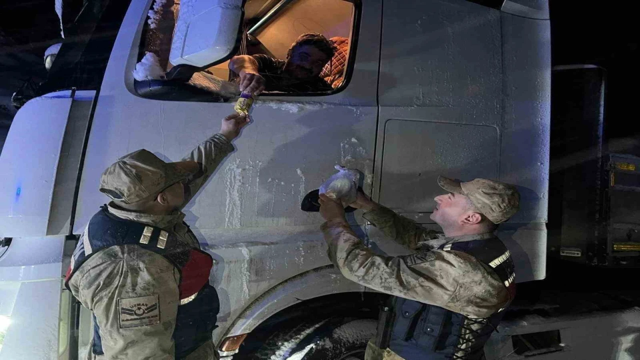 Yoğun kar yağışı ve olumsuz hava şartları nedeniyle yolda kalan vatandaşlara Jandarma ve Kızılay ekiplerince yiyecek ve içecek ikramında bulunuldu. Ekipler, zorlu kış şartlarında vatandaşların mağduriyet yaşamaması için yoğun çaba sarf etti.