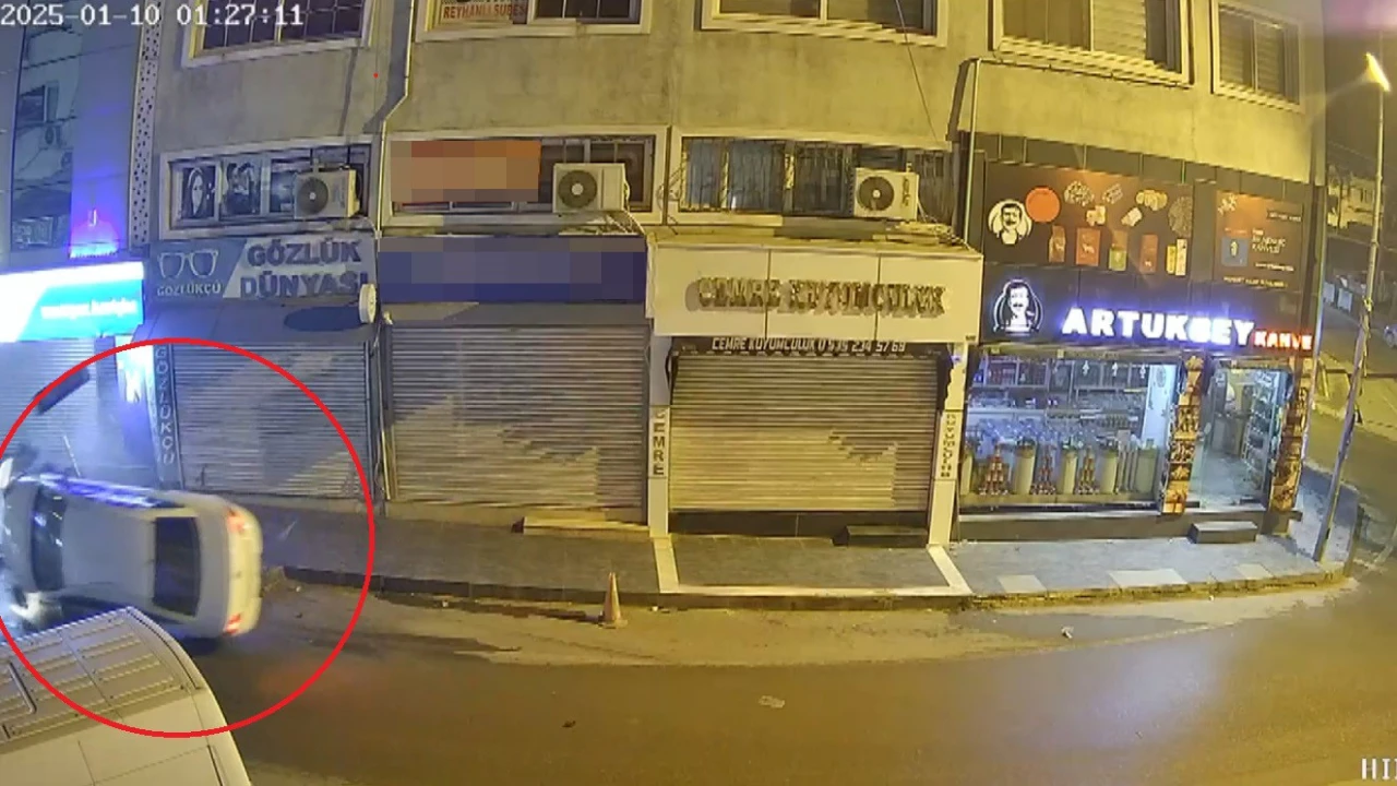HATAY’IN REYHANLI İLÇESİNDE BİR OTOMOBİLİN KALDIRIMA ÇARPIP TAKLA ATTIĞI ANLAR GÜVENLİK KAMERALARINA YANSIDI.