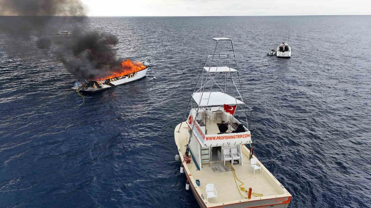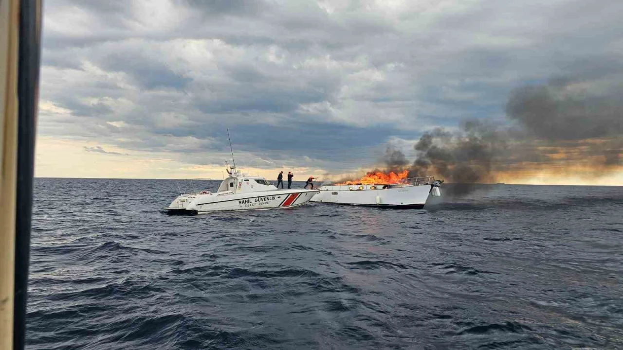 Olay, saat 12.00 sıralarında Kaş ilçesine bağlı Kalkan Mahallesi açıklarında yaşandı. Edinilen bilgiye göre, Kaş’tan Marmaris’e giden lüks bir tekneden alevler yükselince kaptan yardım talebinde bulundu. İhbarın ardından bölgeye Sahil Güvenlik ekipleri yönlendirilirken, jandarma ve sağlık ekipleri de limana geldi. Sahil Güvenlik ekipleri, tekneye hızlı bir şekilde ulaşarak, yoğun dumanın yükseldiği teknedeki kaptanı botla güvenli bir noktaya aldı. Teknedeki yangına müdahalede bulunulurken, Kalkan Yelken Spor Kulübü’nden de bir tekne çalışmalara destek verdi. Kıyıya çekilmeye çalışılan teknenin bir süre sonra büyük bölümünün yandığı gözlendi. Yangın anları ise dron kamerasıyla görüntülendi.
