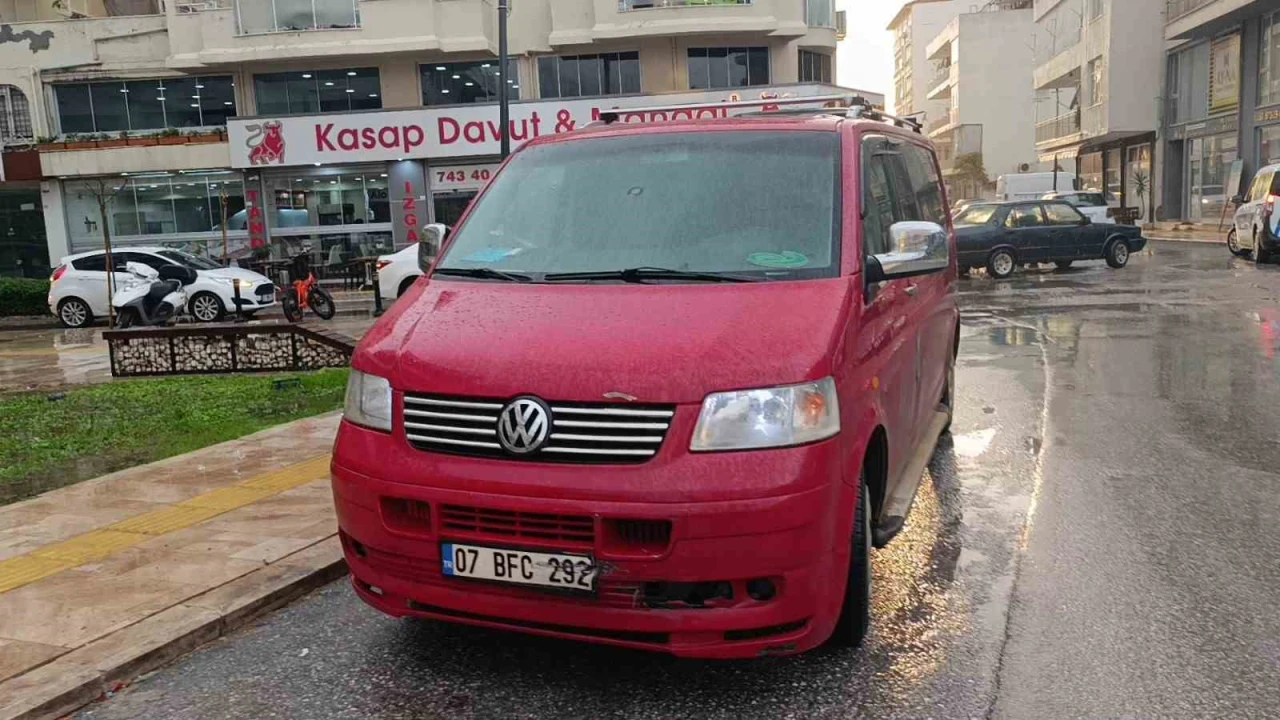 Manavgat’ta kamyonetin çarptığı hafif ticari araç, direğe çarptı.