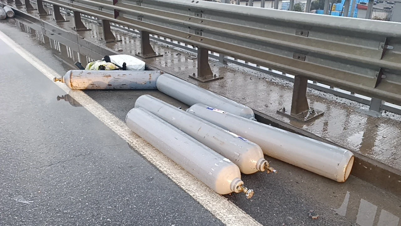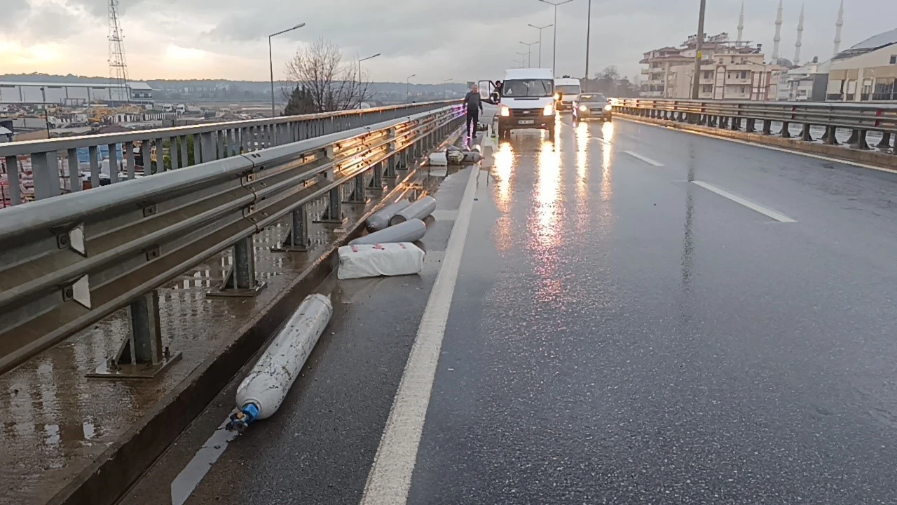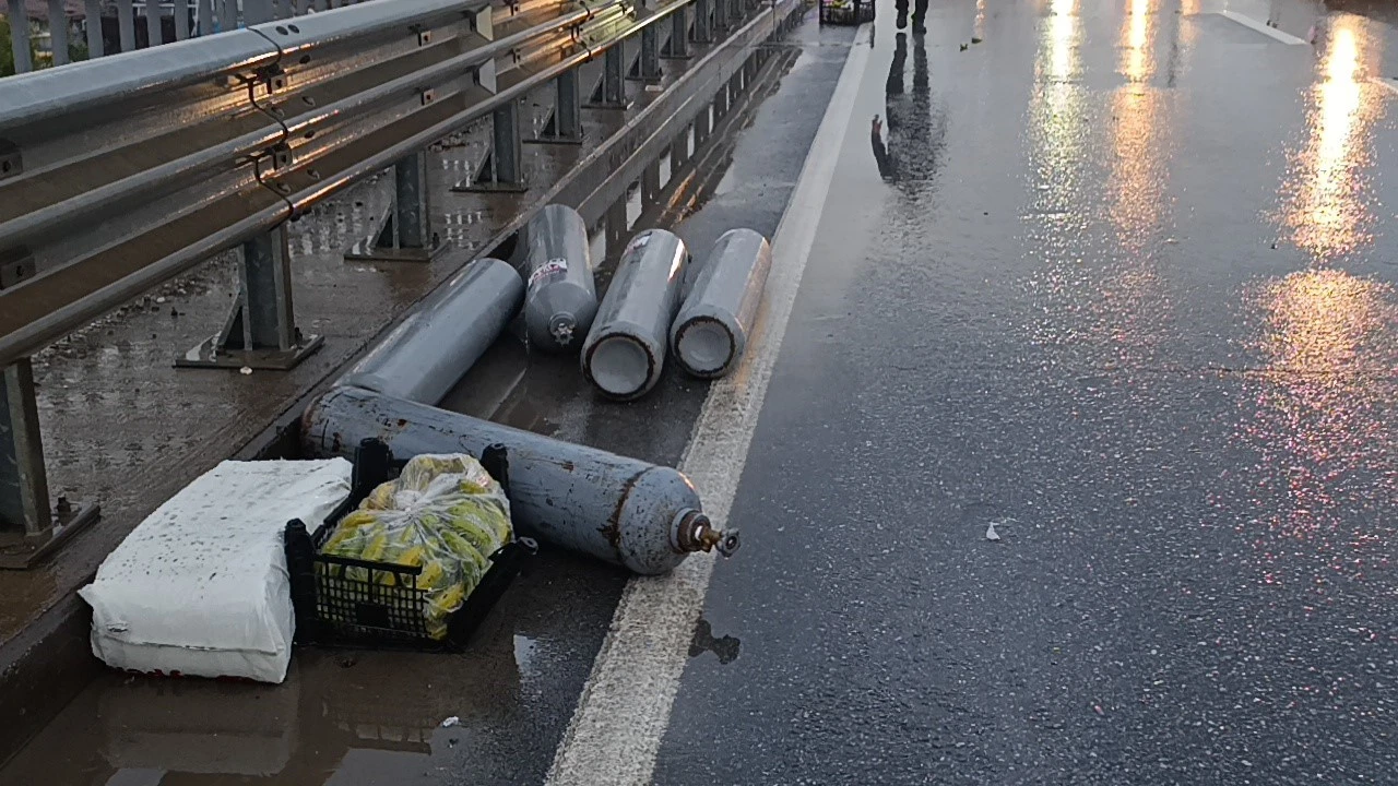 Kamyonette büyük çapta maddi hasar oluşurken, kamyonetin üzerinde bulunan poşet torbaları ve muz sarartma tesislerinde kullanılan çok sayıda etilen gazı tüpü köprülü kavşak üzerinde 100 metrelik alanda yola saçıldı.