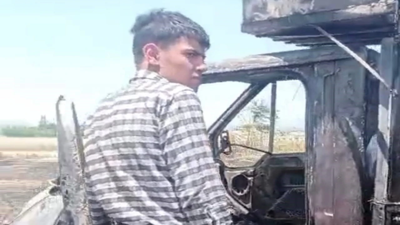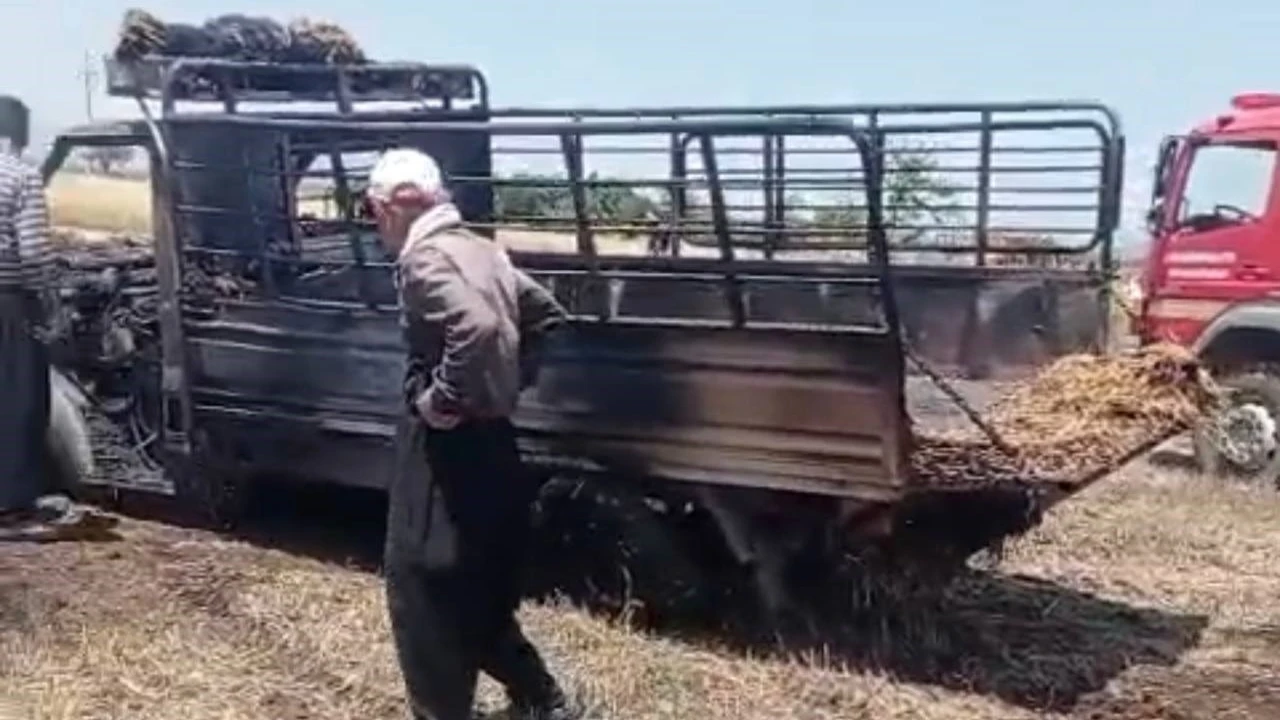 Adana’da saman balyası toplamak için tarlaya sokulan kamyonet, lastik kısmından alev alarak küle döndü.