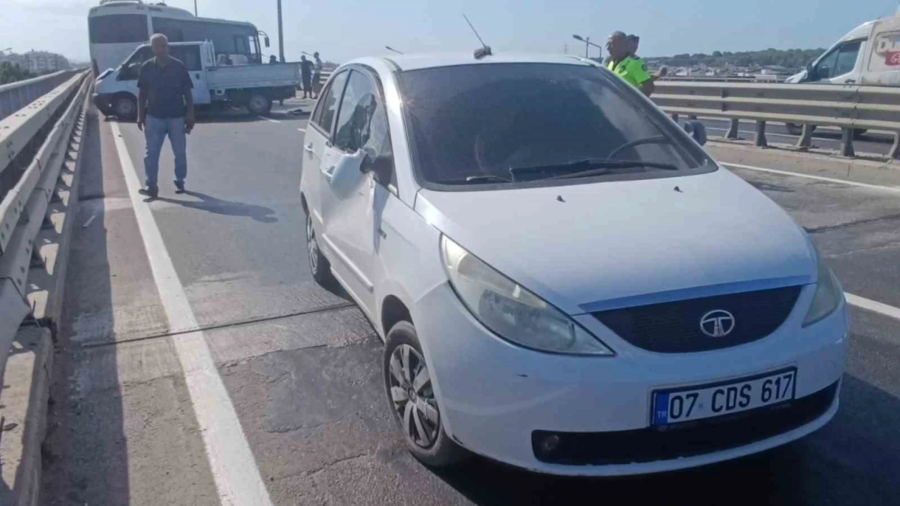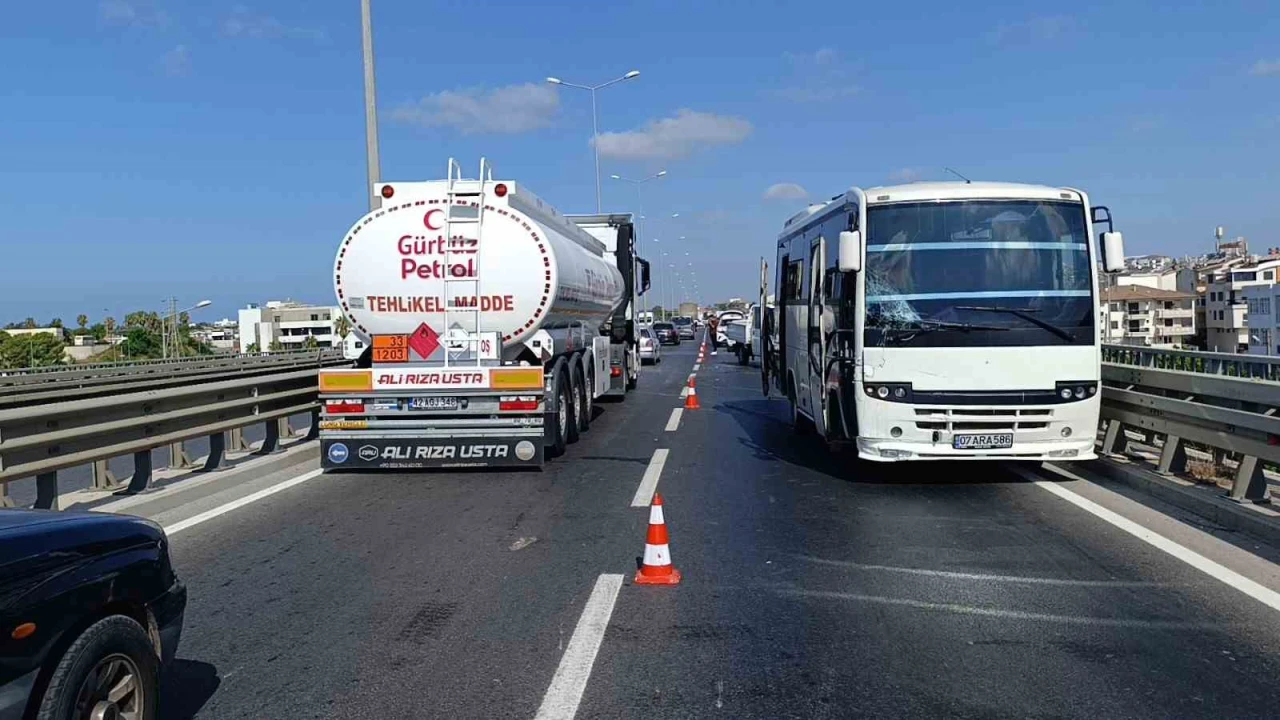 Kaza; Alanya-Antalya D-400 Karayolunda yaşandı. Edinilen bilgiye göre Alanya istikametinden Antalya istikametine seyir halindeki Eray Yusuf Şenoğlu kullandığı 07 DCT 44 plakalı kamyonet kasasından yola düşen kapı ve pencereleri toplamak istedi. Bu sırada aynı istikamette seyir halinde olan ve malzemeleri görerek duran Erkin Yamaç’ın kullandığı 07 HTH 91 plakalı kamyonete İbrahim Halil Çelik’in kullandığı 07 ARA 586 plakalı tur midibüsünün arkadan çarptı. Çarpmanın etkisiyle savrulan kamyonet ise sol şeritte gitmekte olan Ramazan Acar’ın kullandığı 07 CDS 617 plakalı otomobile çarptı. Kazada yaralanan tur midibüsü sürücüsü İbrahim Halil Çelik 112 sağlık ekiplerinin olay yerindeki müdahalesinin ardından ambulansla hastaneye kaldırıldı.