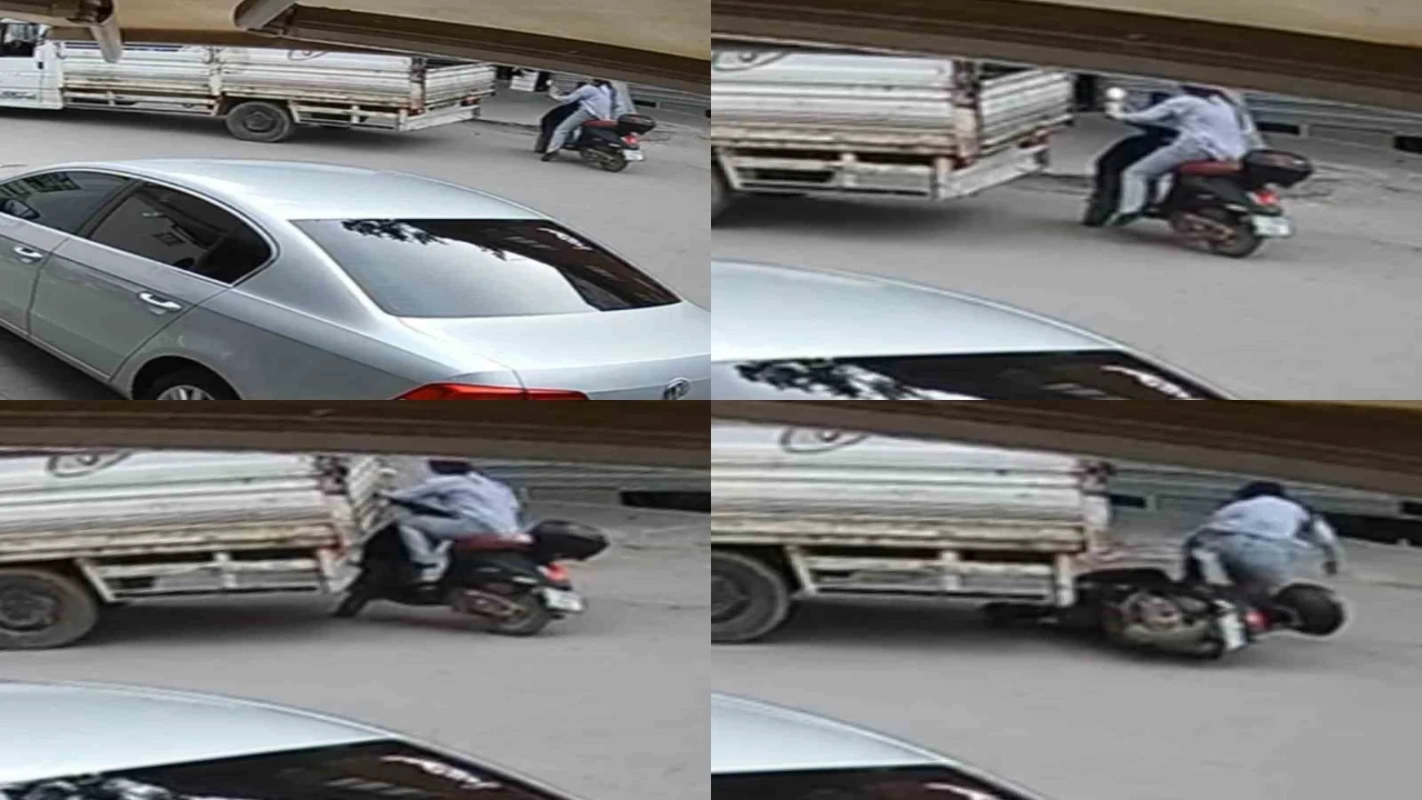 Adana’nın Kozan ilçesinde geri gelen kamyonun çarptığı motosikletli genç kız son anda kendini kurtardı. Kaza anı saniye saniye güvenlik kamerasına yansıdı.