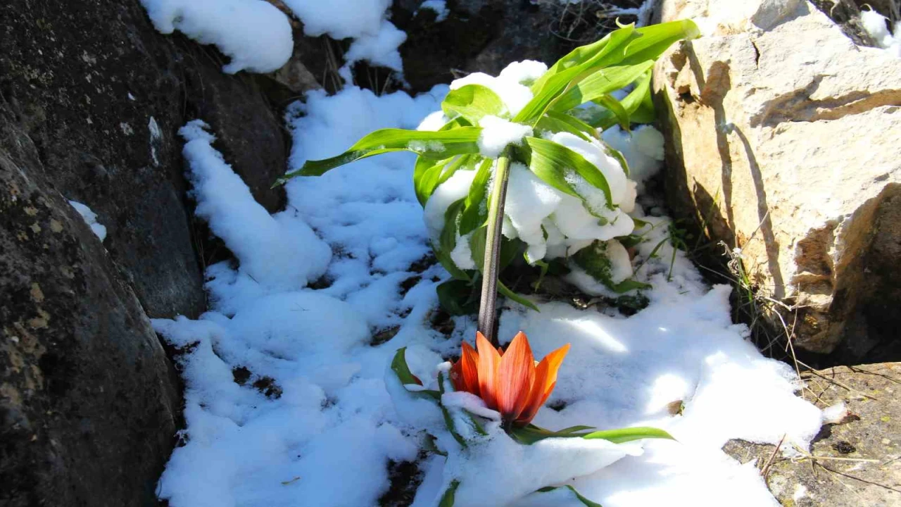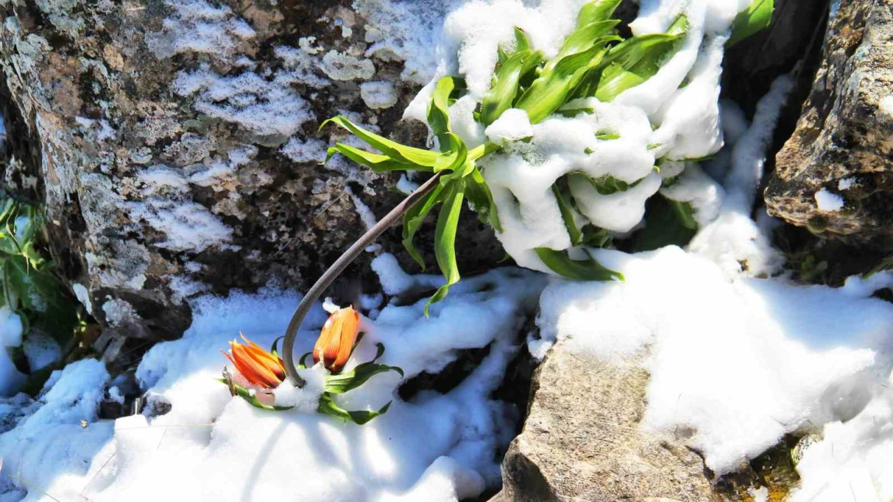 KAHRAMANMARAŞ'TA BAHARIN MÜJDECİSİ OLAN TERS LALELER KAR ALTINDA KALDI.