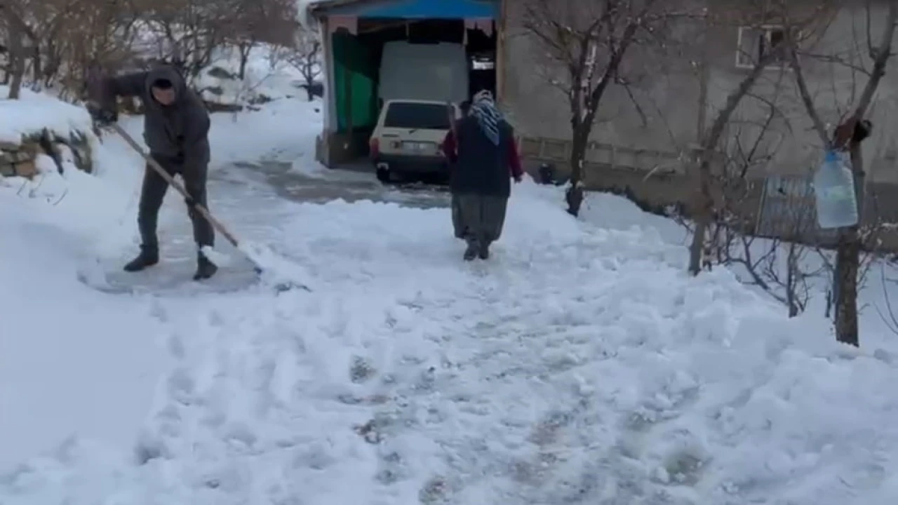 Saimbeyli, Tufanbeyli Kayseri yolu gece saatlerinde etkili olan yoğun kar yağısı nedeni ile trafiğe kapanırken köylerde vatandaşlar karla kapanan evlerinin önünü küreklerle açtılar.
