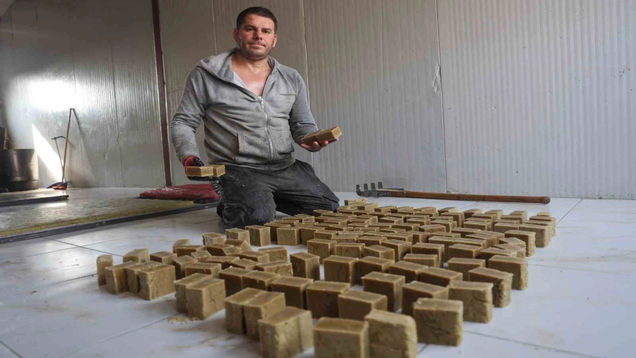 HATAY (İHA) - Hatay'da babasından devraldığı sabun üretimini 30 yıldır devam ettiren üretici, bölge halkının vazgeçilmezleri arasında olan ve cilde faydası saymakla bitmeyen zeytinyağlı defne sabunu için mesai yapıyor.