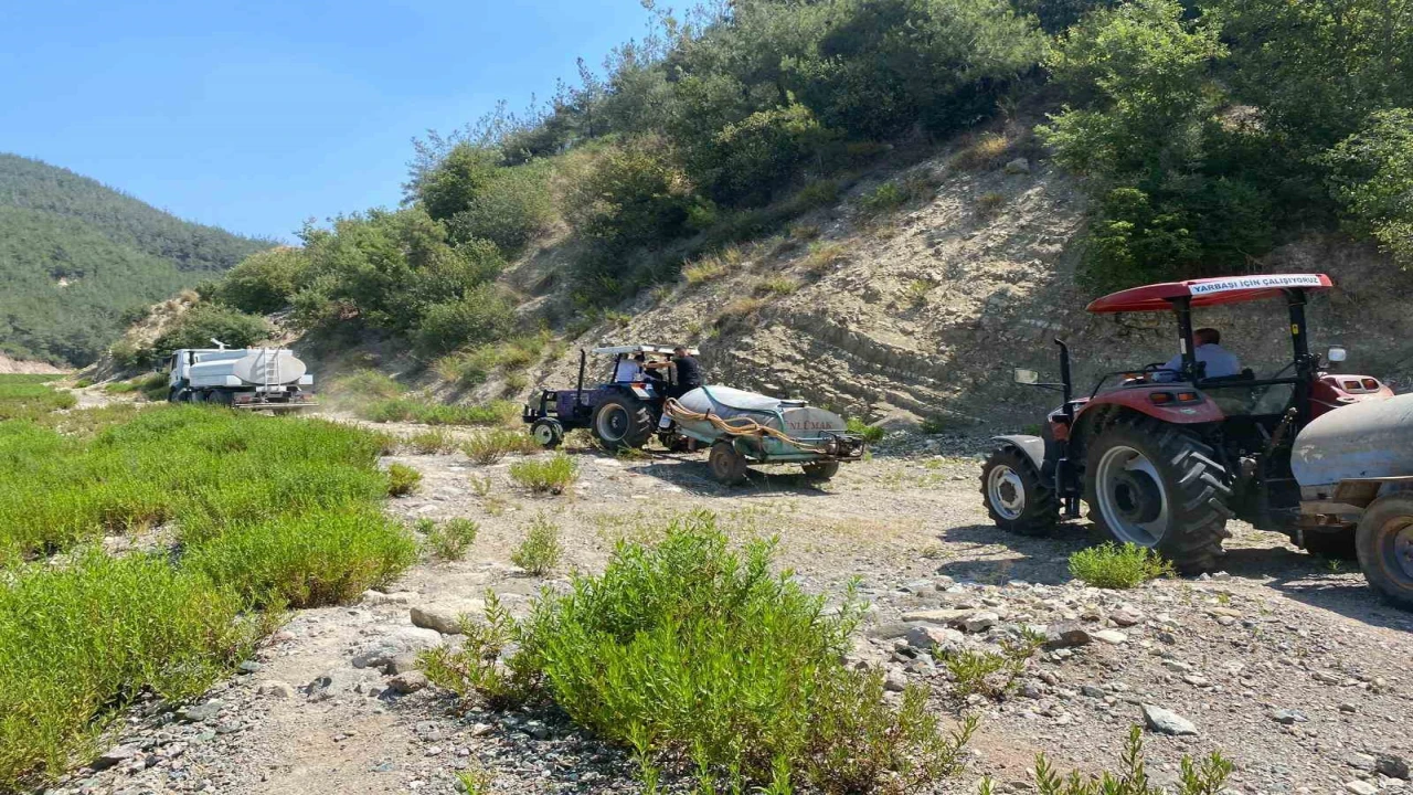 Osmaniye’de Karacaören Gölet’ine, köylüler ve belediye ekipleri gölette bulunan pullu sazanların oksijen sirkülasyonunu sağlamak ve muhtemel orman yangınlarında helikopterlerin su ikmalini kolaylaştırmak amacıyla su tankerleriyle su takviyesi yaptı.