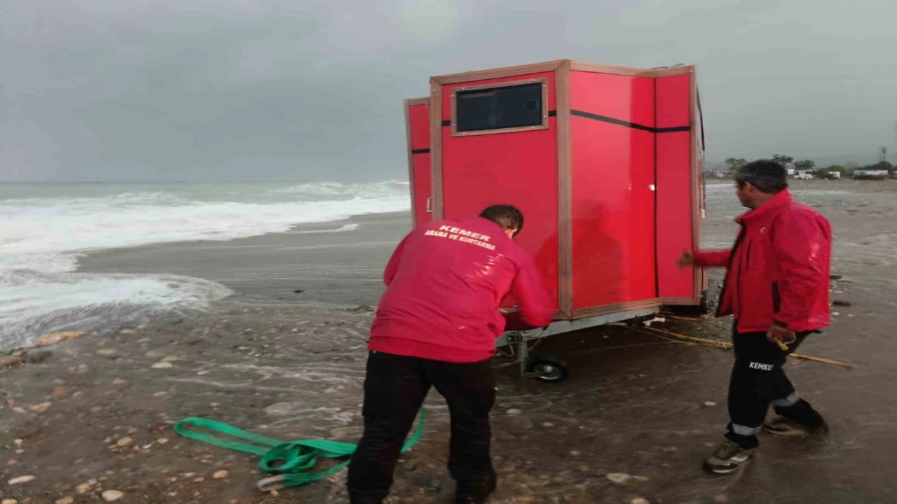 Antalya’nın Kemer ilçesinde şiddetli yağmur sırasında iki karavan denize sürüklendi. Karavanlardan birinde mahsur kalan Rus turistler, Kemer Belediyesi Afet İşleri Müdürlüğü ile KEMKUT ekipleri tarafından kurtarıldı.