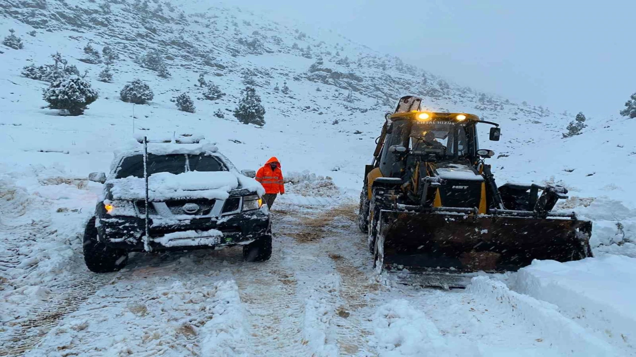 Antalya’nın yüksek kesimlerinde etkili olan yoğun kar yağışı, Çimi Yaylası’nda hayatı olumsuz etkiledi. Kar görmek için yaylaya çıkan ve araçları kayarak şarampole düşen üç kişi, Büyükşehir Belediyesi Akseki İlçe Hizmet Birimi ve Kırsal Hizmetler Dairesi Başkanlığı ekiplerinden yardım istedi. Gelen ihbar üzerine hızla harekete geçen ekipler, greyder ve kepçe yardımıyla zorlu hava şartlarında 15 kilometrelik yolu açarak vatandaşlara ulaştı.