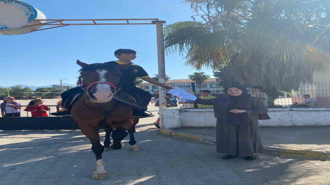 Antalya’nın Serik ilçesinde 6. Sınıf öğrencisi karnesini almak için okula atı ile geldi. Karnesini de atın üzerinde alan atlı öğrenciyi görenler gözlerine inanamadı.