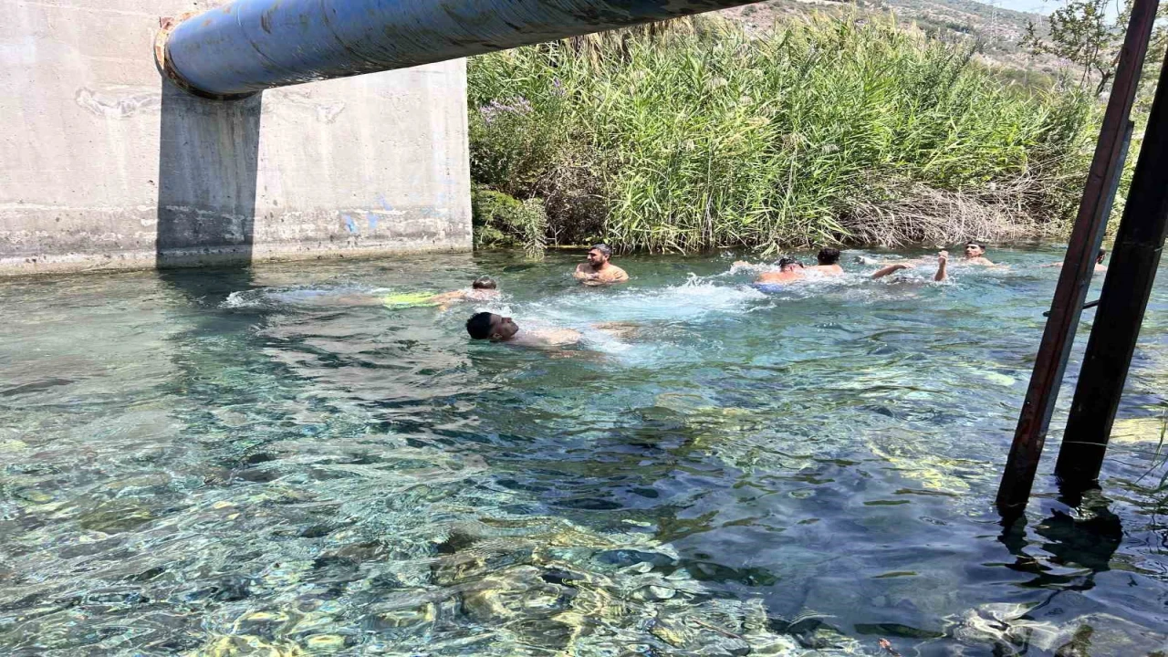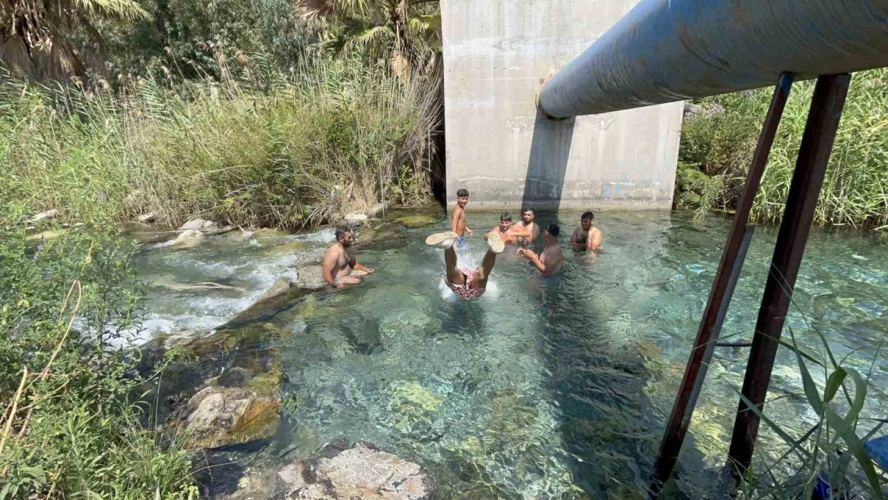 HAVA SICAKLIĞININ 45 DERECEYE ULAŞTIĞI HATAY’DA VATANDAŞLAR, ÇAREYİ DOĞAL KAYNAK SUYUNA GİRMEKTE BULDU.