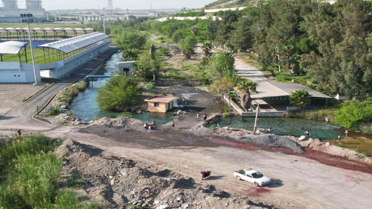 Türkiye’nin birçok noktasında sıcaklık rekorları kırılırken Hatay’da termometreler 45 dereceye dayandı. Sıcak hava ve nemin tavan yaptığı kentte serinlemek isteyen vatandaşlar, İskenderun ilçesi Sarıseki Mahallesi’nde bulunan doğal kaynak suyunda serinlediler. Sıcak havalarda vatandaşların vazgeçilmezi olan kaplıca, bölgedeki birçok insan tarafından tercih ediliyor.