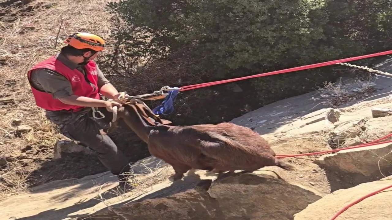 Antalya’nın Korkuteli ilçesinde kaya oyuğunda 3 gündür mahsur kalan keçi, arama kurtarma ekipleri tarafından film gibi operasyonla bulunduğu yerden çıkartılarak sahibine teslim edildi.