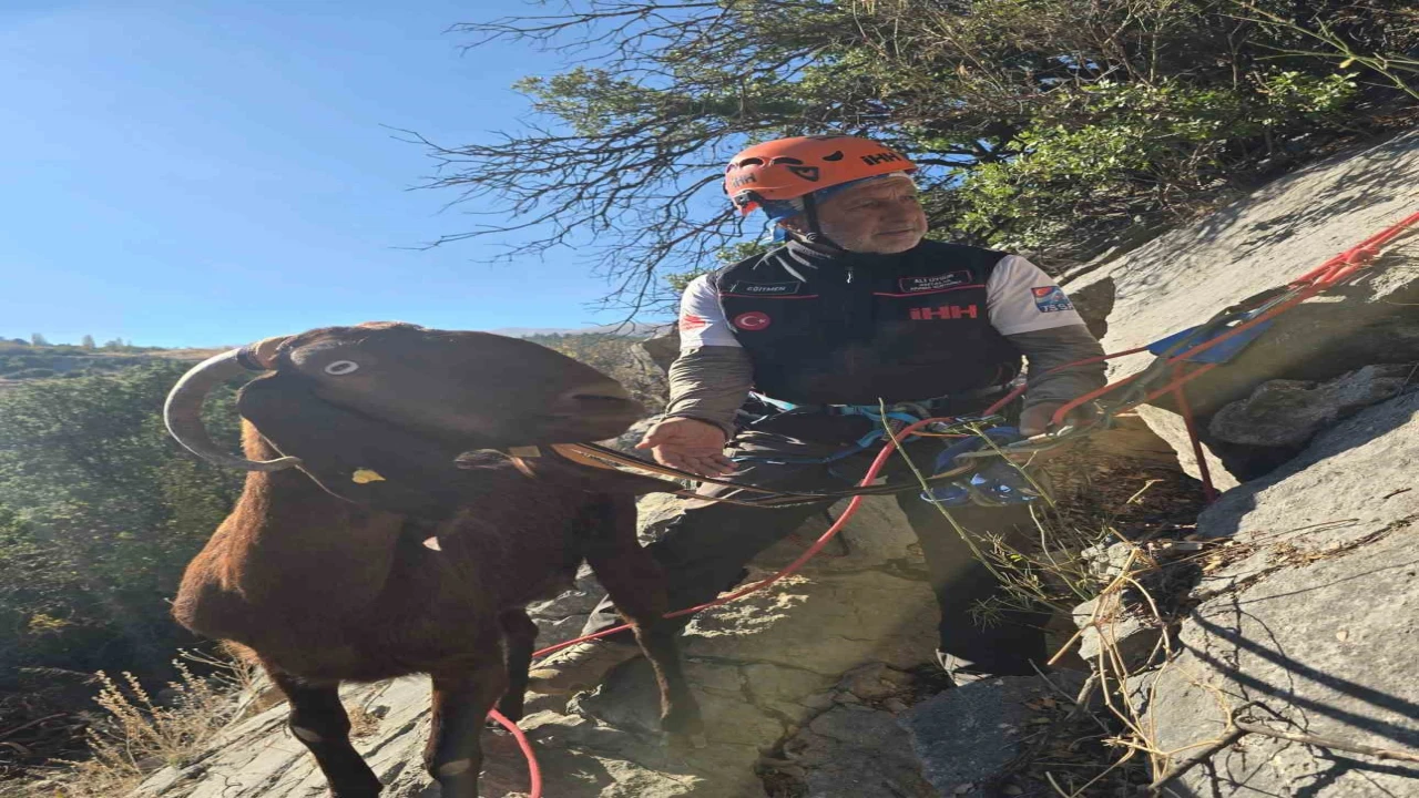 Korkuteli ilçesi Güzle köyü dağlık alanda sahibi tarafından otlatıldığı sırada bir keçi kaya oyuğuna düştü. Sahiplerinin keçiyi kendi imkanlarıyla sıkıştığı yerden çıkarma çabaları sonuç vermeyince, durum arama kurtarma birimlerine bildirildi. İhbarla Antalya’dan yola çıkan ve Güzle köyüne gelen arama kurtarma ekibi, keçiyi bulunduğu yerden kurtarmak için harekete geçti. İple erişim teknikleri kullanılarak keçiye ulaşan arama kurtarma ekibi yaklaşık 2 saatlik çalışma ile mahsur kaldığı yerden çıkartarak sahibine teslim etti.