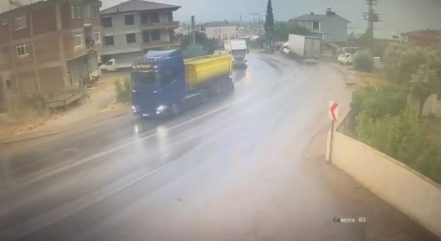 Bursa’da sağanak yağış sebebiyle kayganlaşan yolda yan dönen tır, yolu kapattı. Büyük tehlike atlatılan kazada yaralanan olmazken, tır sürücüsü olay yerinden kaçtı. Kaza anı güvenlik kameralarına yansıdı.