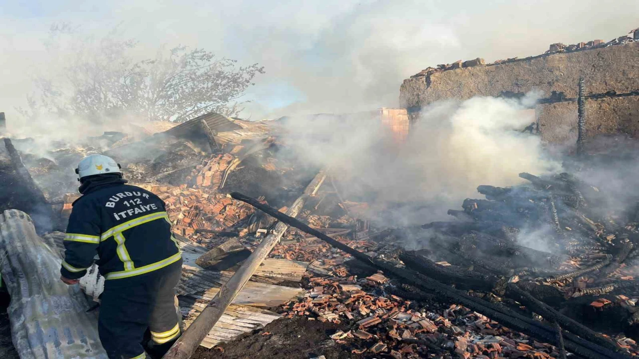 Burdur merkeze bağlı İğdeli köyünde kaynak makinesinden sıçrayan kıvılcımların samanları tutuşturması sonucu 2 katlı ahşap ev, araç ve ahır yanarken, ahırda bulunan 3 buzağı da telef oldu.